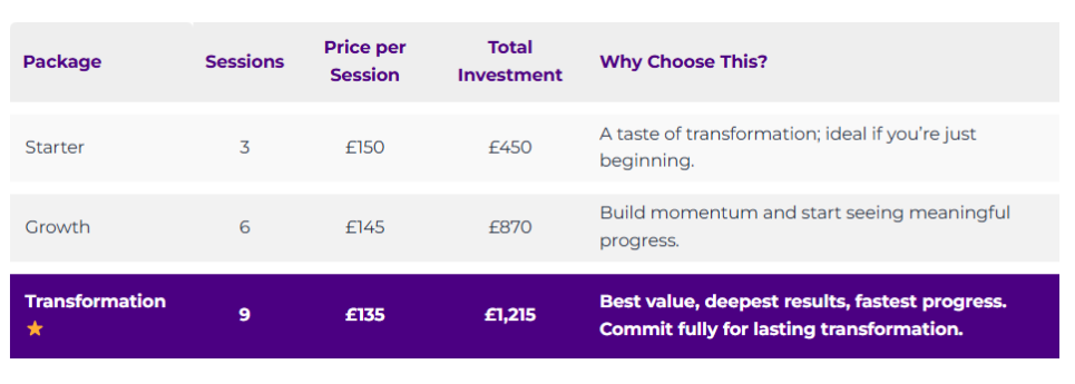 The investment for this session is £150, all sessions can take place online.